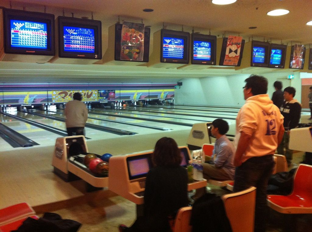 夜は皆でボーリング。