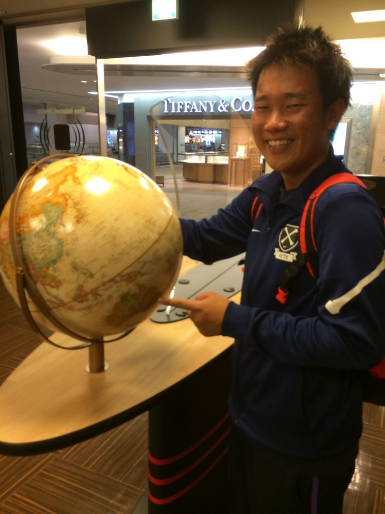 今から行くオーストラリアを指し、歴史を塗り替えると意気込むタカヒロ。